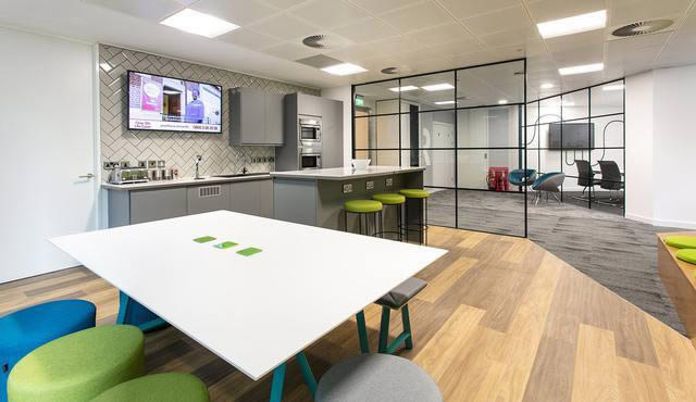 | Rethink Group,是英國一家提供招聘和人才管理服務(wù)的全球性公司,成立于2005年。本案是其位于英國伯明翰的新辦公室設(shè)計及辦公家具應(yīng)用案例,由工作場所設(shè)計公司Interaction團(tuán)隊打造。設(shè)計以品牌色彩和靈活自由的曲線勾勒的圖形背景墻,為整個空間帶來統(tǒng)一的視覺與靈動的氣息。 |
